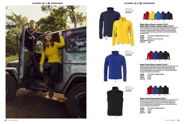 Qualität : 100 % Polyester , Antipilling Polarfleece Gewicht : 280 g / m 2 Größen : XS – 4XL Empf . VK : € 33,95