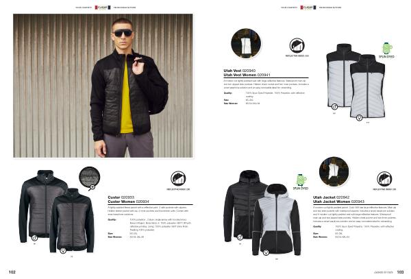 100 % polyester , 2 layer ; single jersey with bonded micro fleece 240gsm . Body fabric 2 : 100 % polyester 380T CIR with reflective printing . Lining ; 100 % polyester 380T shiny finish . Padding 100 % polyester XS-3XL