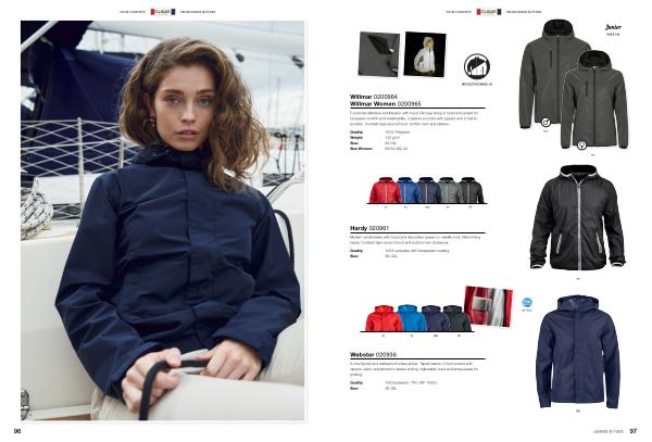 A nice Sporty and waterproof unisex jacket . Taped seams , 2 front pocket with zippers . Velcro adjustment in sleeve ending . Adjustable hood and ample areas for printing .