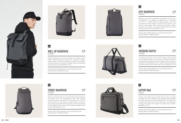 Modern backpack with roll up function to increase volume when needed. Separate storage for 15” computer or tablet. Safety pocket in the back and hidden pocket in the bottom and two pockets on the sides. TPU zipper, reflective zip pullers and key hook inside. 29x42x15cm ≈ 18 l