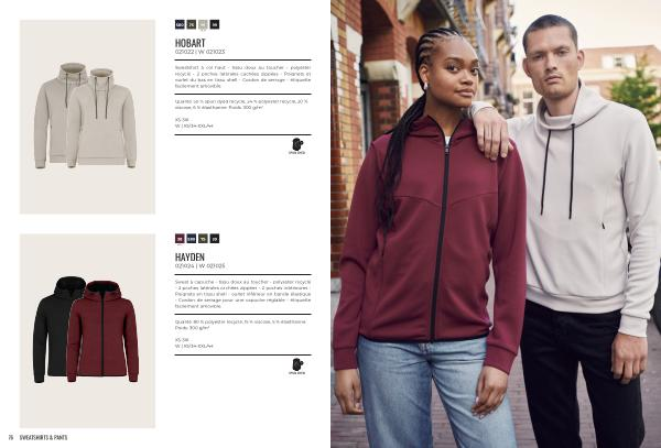 Qualité: 80 % polyester recyclé, 15 % viscose, 5 % élasthanne. Poids: 300 g / m 2