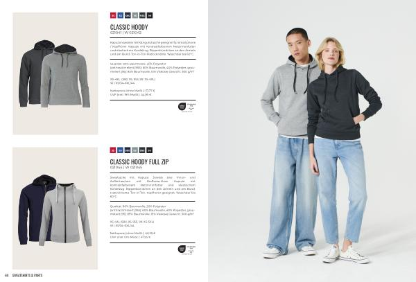 Qualität: 80 % Baumwolle, 20 % Polyester( anthrazitmeliert [ 955 ]: 60 % Baumwolle, 40 % Polyester, graumeliert [ 95 ]: 85 % Baumwolle, 15 % Viskose) Gewicht: 300 g / m 2