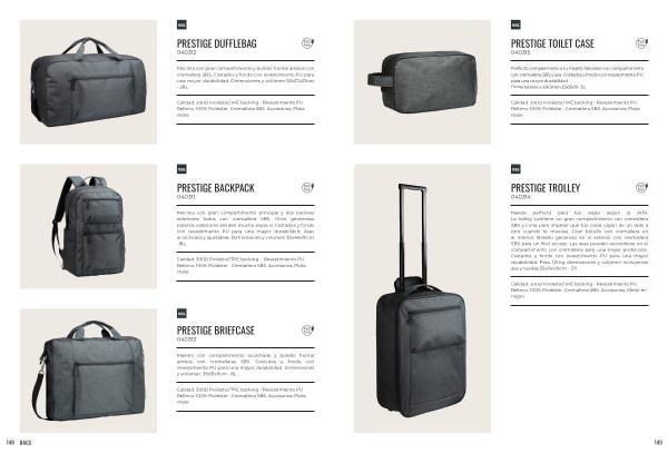 Calidad: 300D Poliéster / TPE backing- Revestimiento PU Relleno: 100 % Poliéster. Cremallera SBS. Accesorios; Plata mate