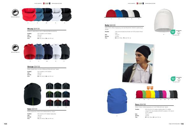 Dubbel single jersey mössa med sex flatlocksömmar i toppen. | |