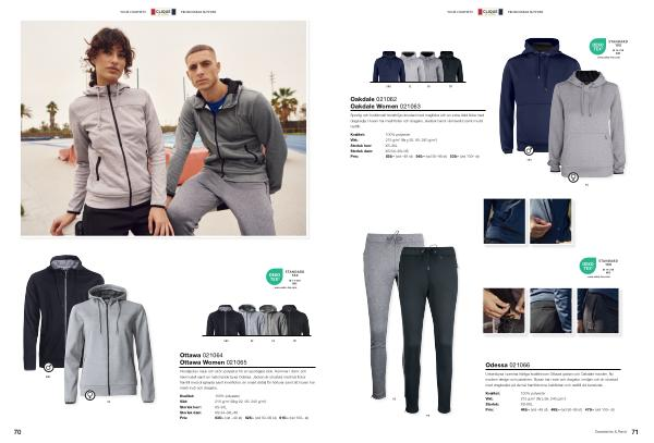 100 % polyester Vikt: 215 g / m 2( färg 92, 95: 240 g / m 2) Storlek herr: