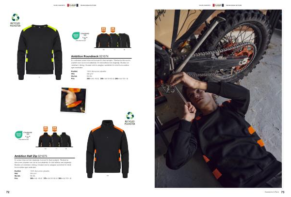En rundhalsad unisex-tröja med kontrast för ökad synlighet. Tillverkad av återvunnen polyester som har en bomullskänsla. En dold sidficka med dragkedja. Muddar och nederkant i ribbtyg. Utrustad med en avtagbar nacketikett för enkelt kunna addera egen avsändare.