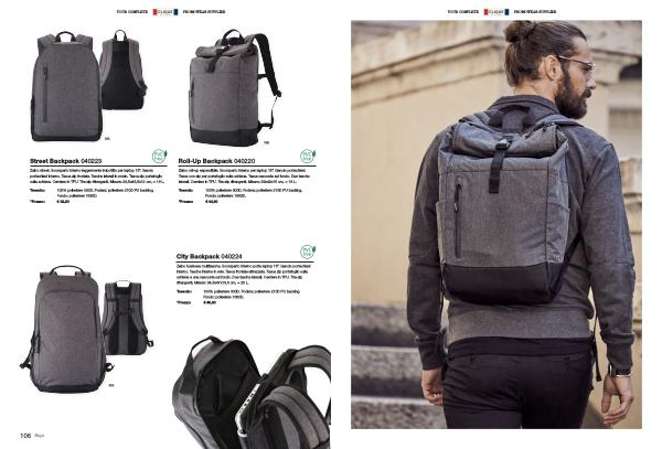 Zaino business multitasche . Scomparto interno porta laptop 15 ”. Gancio portachiavi interno . Tasche interne in rete . Tasca frontale attrezzata . Tasca zip portafoglio sulla schiena e una nascosta sul fondo . Due tasche laterali . Cerniere in TPU . Tira-zip rifrangenti . Misure : 34,5x47x15,5 cm , ≈ 25 L .