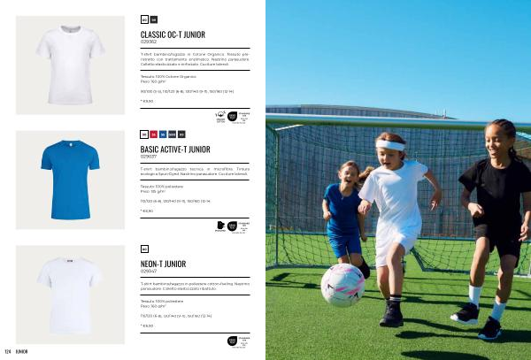 T-shirt bambino / ragazzo in poliestere cotton-feeling. Nastrino parasudore. Colletto elasticizzato ribattuto.