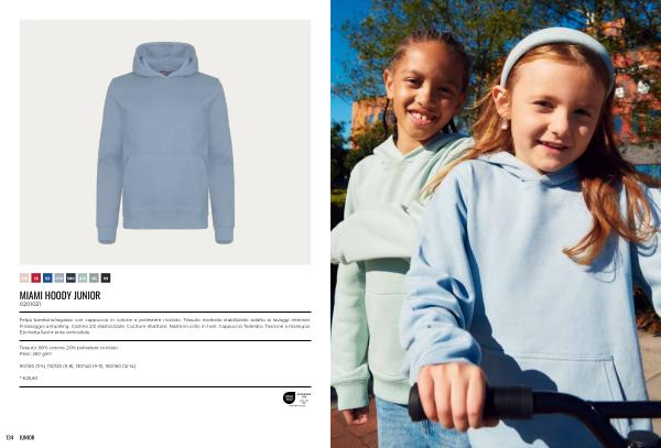 Felpa bambino / ragazzo con cappuccio in cotone e poliestere riciclato. Tessuto morbido stabilizzato adatto ai lavaggi intensivi. Finissaggio antipilling. Costine 2 / 2 elasticizzate. Cuciture ribattute. Nastrino collo in twill. Cappuccio foderato. Tascone a marsupio. Etichetta facilmente removibile.