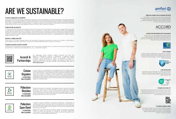 Come parte del Gruppo New Wave, ci dedichiamo a lavorare in modo responsabile e a contribuire agli obiettivi di sviluppo sostenibile delle Nazioni Unite. La nostra strategia si concentra sull’ affrontare le principali sfide globali come il cambiamento climatico, l’ esaurimento delle risorse e la disuguaglianza sociale: questioni che mettono a rischio anche la nostra attività, il pianeta e gli individui legati alla nostra catena valoriale. In linea con questi propositi, ci impegniamo ogni anno ad ampliare la nostra gamma di prodotti che includono materiali green: tessuti e processi progettati per ridurre al minimo i danni a persone e ambiente.