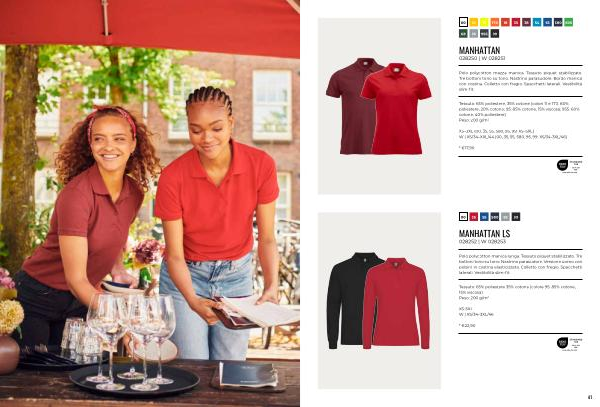 Tessuto: 65 % poliestere, 35 % cotone( colori 11 e 170: 80 % poliestere, 20 % cotone; 95: 85 % cotone, 15 % viscosa; 955: 60 % cotone, 40 % poliestere) Peso: 200 g / m 2