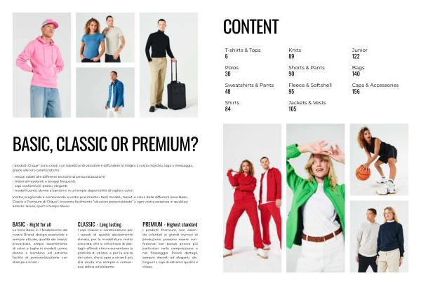 Inoltre, scegliendo e combinando a vostro piacimento i tanti modelli, tessuti e colori delle differenti linee Basic, Classic e Premium di Clique ®, troverete facilmente“ soluzioni personalizzate” a ogni vostra esigenza in qualsiasi ambito: lavoro, sport o tempo libero.