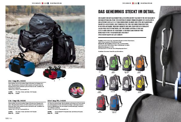 Produkte: 040221 Laptop bag, 040223 Street Backpack, 040224 City backpack,