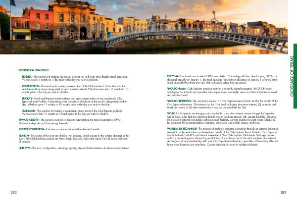 network to make reservations at destinations outside of the Club Exploria Resort Portfolio. Club Exploria