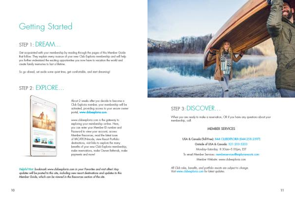 Get acquainted with your membership by reading through the pages of this Member Guide that follow . They explain every nuance of your new Club Exploria membership and will help you further understand the exciting opportunities you now have to vacation the world and create family memories to last a lifetime .