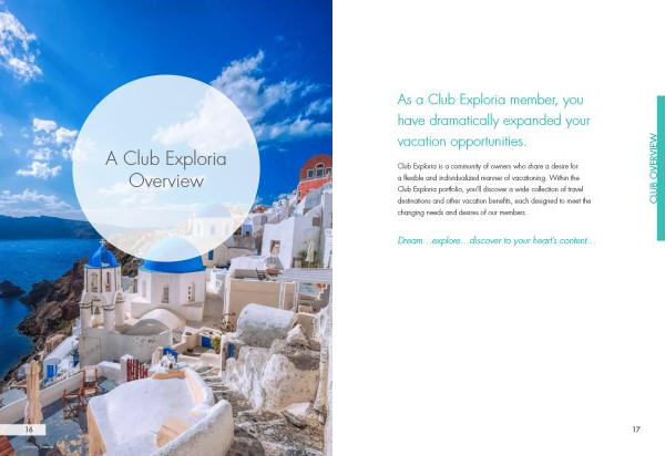 Club Exploria is a community of owners who share a desire for a flexible and individualized manner of vacationing . Within the Club Exploria portfolio , you ’ ll discover a wide collection of travel destinations and other vacation benefits , each designed to meet the changing needs and desires of our members .