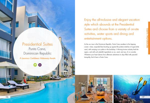 Enjoy the all-inclusive and elegant vacation style which abounds at the Presidential Suites and choose from a variety of on-site activities , water sports and dining and entertainment options .