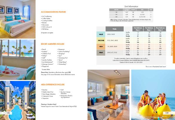 PRESIDENTIAL SUITES One Bedroom Sleeps 4 Two Bedroom Sleeps 6 Three Bedroom Sleeps 8 Weeks 20-23 , 36-38 9-19 , 39-41 , 48-50 1-8 , 24-28 , 42-46 29-35 , 47 , 51-52 VALUE DISCOVER HIGH PRIME Sun-Thu Fri-Sat Weekly Sun-Thu Fri-Sat Weekly Sun-Thu Fri-Sat Weekly Sun-Thu Fri-Sat Weekly To make a reservation , log-in to www . clubexploria . com or call us : In the USA & Canada ( Toll-Free ): 844 . CLUB-EXPLORIA ( 844.258.2397 ) Outside of USA & Canada : 321.203.5203 11 13 81 18 23 136 25 32 189 14 19 108 23 32 179 32 45 250 18 23 136 29 40 225 41 55 315 21 28 161 35 47 269 49 66 377 UNIT TYPE OCCUPANCY ( MAX / PRIV ) KITCHEN BEDS BATHS 1 BR 2 BR 3 BR 4 / 2 6 / 4 8 / 6 Full Full Full K , DS K , 2T , DS K , 2T , 2T , DS 1 2 2 Unit Information BEDS : K ( King ), Q ( Queen ), D ( Double ), T ( Twin ), BB ( Bunk Beds ), QS ( Queen sleeper sofa ), DS ( Double sleeper sofa ), QM ( Queen murphy bed ) This is not a Presidential Level resort . 199