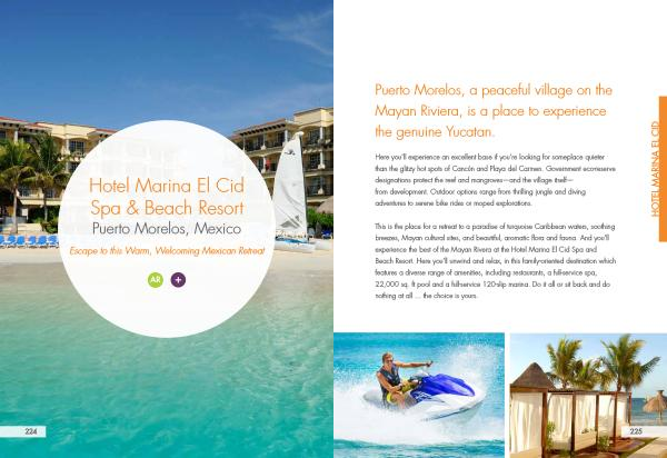 This is the place for a retreat to a paradise of turquoise Caribbean waters , soothing breezes , Mayan cultural sites , and beautiful , aromatic flora and fauna . And you ’ ll experience the best of the Mayan Rivera at the Hotel Marina El Cid Spa and Beach Resort . Here you ’ ll unwind and relax , in this family-oriented destination which features a diverse range of amenities , including restaurants , a full-service spa , 22,000 sq . ft pool and a full-service 120-slip marina . Do it all or sit back and do nothing at all ... the choice is yours .