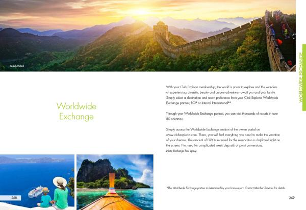 With your Club Exploria membership , the world is yours to explore and the wonders of experiencing diversity , beauty and unique adventures await you and your family . Simply select a destination and resort preference from your Club Exploria Worldwide Exchange partner , RCI ® or Interval International ® *.