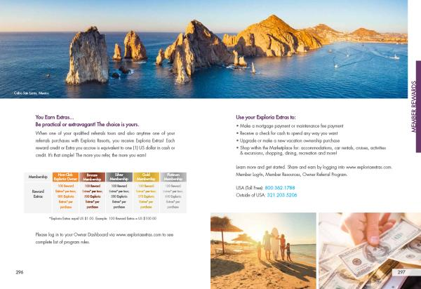Learn more and get started . Share and earn by logging into www . exploriaextras . com . Member Log-In , Member Resources , Owner Referral Program .
