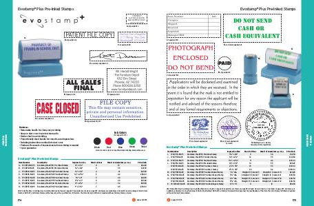 A. 1PI-EP10-NAV5 Evostamp Plus EP10 Pre-Inked Stamp ½ " x 11 ⁄ 16 " 4 15 $ 22.50 B. 1PI-EP12-NAV5 Evostamp Plus EP12 Pre-Inked Stamp 5 ⁄ 16 " x 21 ⁄ 2 " 3 35 $ 21.50 C. 1PI-EP20-NAV5 Evostamp Plus EP20 Pre-Inked Stamp 9 ⁄ 16 " x 11 ⁄ 2 " 4 21 $ 23.50 D. 1PI-EP25-NAV5 Evostamp Plus EP25 Pre-Inked Stamp 9 ⁄ 16 " x 215 ⁄ 16 " 5 42 $ 38.00 E. 1PI-EP30-NAV5 Evostamp Plus EP30 Pre-Inked Stamp 11 ⁄ 16 " x 2 " 5 28 $ 28.50 F. 1PI-EP35-NAV5 Evostamp Plus EP35 Pre-Inked Stamp 13 ⁄ 16 " x 2 " 9 28 $ 33.90 G. 1PI-EP40-NAV5 Evostamp Plus EP40 Pre-Inked Stamp 7 ⁄ 8 " x 25 ⁄ 16 " 7 32 $ 35.50 H. 1PI-EP45-NAV5 Evostamp Plus EP45 Pre-Inked Stamp 1 " x 33 ⁄ 16 " 7 45 $ 39.00