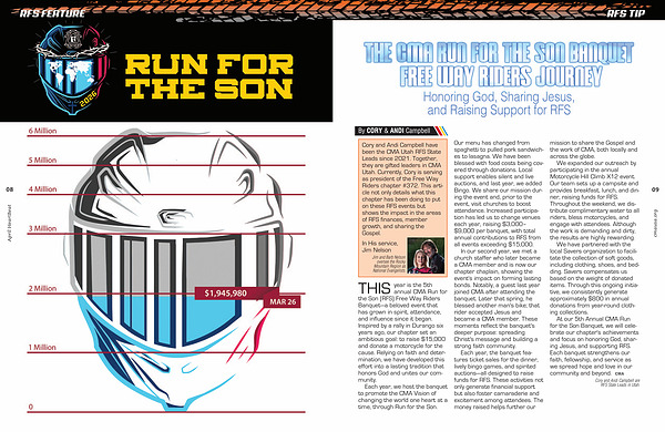 Cory and Andi Campbell have been the CMA Utah RFS State Leads since 2021. Together, they are gifted leaders in CMA Utah. Currently, Cory is serving as president of the Free Way Riders chapter # 372. This article not only details what this chapter has been doing to put on these RFS events but shows the impact in the areas of RFS finances, member growth, and sharing the Gospel.