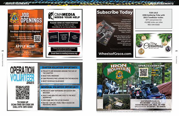 The Christian Motorcyclists Association does not endorse or promote any of the contents of the classified advertisements, nor are they responsible for the validity, condition, or accuracy of any advertised product.