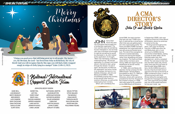 JOHN had a biker friend who was not a Christian that brought him a handwritten application. The man said this was not something he was interested in, but he knew John was a Christian and thought it might be something he would be interested in. As John looked at the application, he thought,β Well, how interesting; a Christian motorcycle group.β He put the application in a drawer and forgot about it. Sometime later, going through the drawer, he saw it again. At that point, he filled out the application, put some money in an envelope, and sent it in to Hatfield, Arkansas. John Sr and Becky joined CMA in 1982, immediately jumping into ministry to the secular biker world in southern Arkansas, as well as the motorcycle prison ministry.