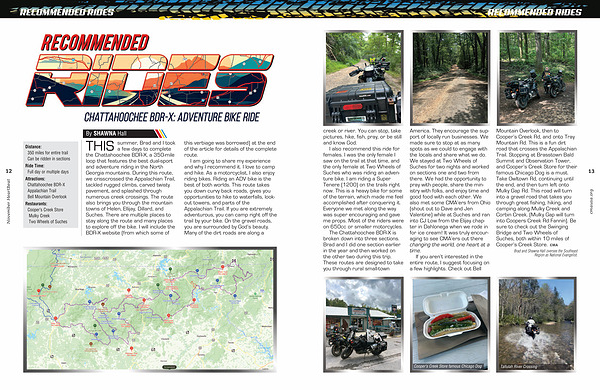 THIS summer, Brad and I took a few days to complete the Chattahoochee BDR-X, a 350-mile loop that features the best dual-sport and adventure riding in the North Georgia mountains. During this route, we crisscrossed the Appalachian Trail, tackled rugged climbs, carved twisty pavement, and splashed through numerous creek crossings. The route also brings you through the mountain towns of Helen, Ellijay, Dillard, and Suches. There are multiple places to stay along the route and many places to explore off the bike. I will include the BDR-X website( from which some of