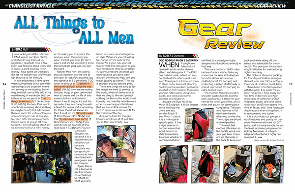 WHEN latest bike, I realized I would not be able to attach saddlebags to it. The CBR has no back seat, indeed, no support behind the riderβ s seat. Not even footpegs or a frame for them to strap on to. I was still planning on doing some weekend getaways, so what to do? I noticed that many younger riders were using backpacks, so I conducted some inquiries and research. I bought the Ogio No-Drag Mach 5 Backpack. It is the largest in the no-drag line; there are also smaller Mach 3 and Mach 1 packs. It is a motorcyclespecific pack. It has a rigid exterior in carbon weave that wonβ t deform or shift. It maintains its shape whether it is crammed full or