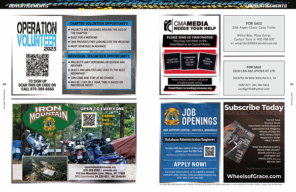 29 cmausa. org The Christian Motorcyclists Association does not endorse or promote any of the contents of the classified advertisements, nor are they responsible for the validity, condition, or accuracy of any advertised product.