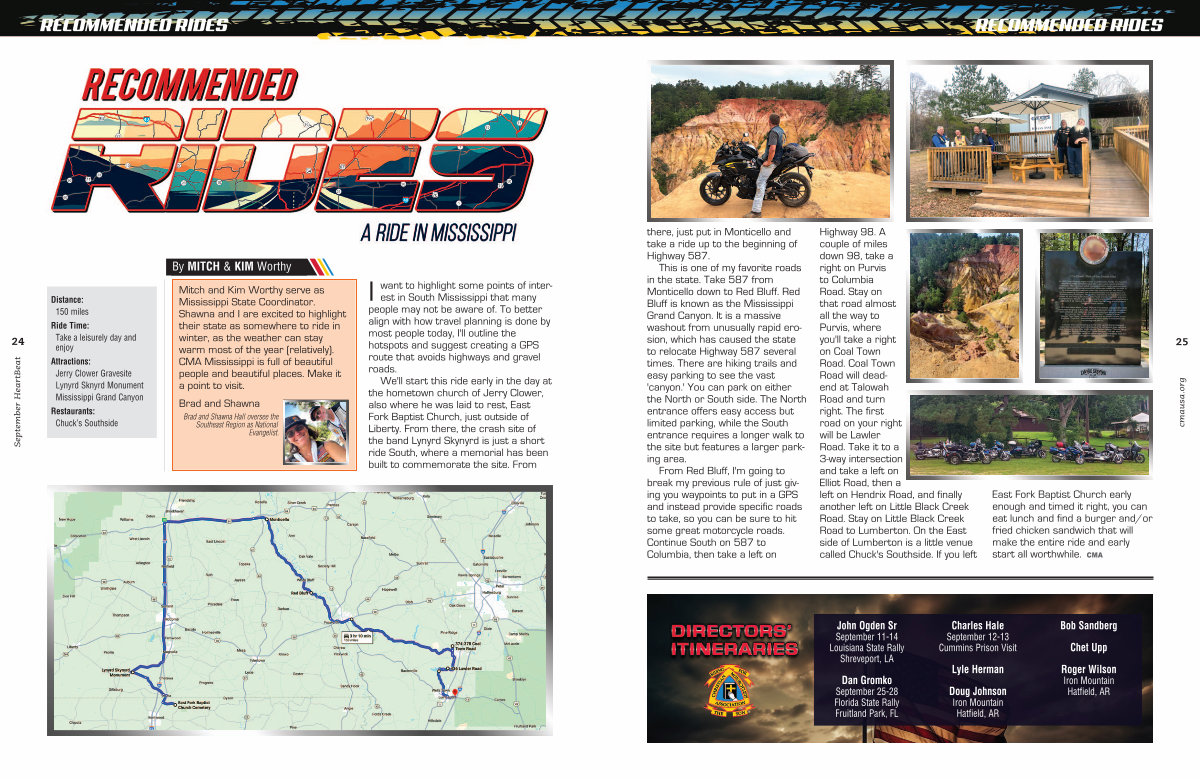 Mitch and Kim Worthy serve as Mississippi State Coordinator. Shawna and I are excited to highlight their state as somewhere to ride in winter, as the weather can stay warm most of the year( relatively). CMA Mississippi is full of beautiful people and beautiful places. Make it a point to visit.