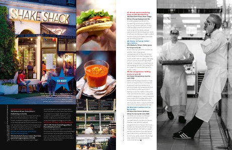 50 Clinton Street (http:/ /wd-50. com) $$$ Modernist chef Wylie Dufresne made waves among the city’s most devout food-lovers when he switched his almost-decade-old restaurant format to one that only offers a choice of tasting menus. No matter: Dufresne’s mad-scientist concoctions—egg yolks cured in Italian amaro, Vietnamese pho soup made with foie gras, a foie gras torchon that ‘bleeds’ beetroot juice when you cut into it—truly benefit from the menu’s new progressive format.