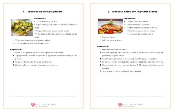 Ingredientes : ✓ 2 tazas de lechuga mixta . ✓ 113g de pechuga de pollo a la parrilla , cortada en trozos . ✓ 1 / 2 aguacate maduro , cortado en cubos . ✓ 1 / 4 de taza de tomates cherrys , cortados por la mitad . ✓ 1 / 4 de taza de pepino , cortado en rodajas . ✓ 2 cucharadas de aderezo bajo en grasa .