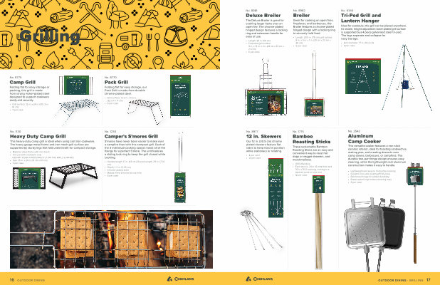 This heavy-duty camp grill is ideal when using cast iron cookware . The heavy gauge metal frame and iron mesh grill surface are supported by sturdy legs that fold underneath for compact storage .