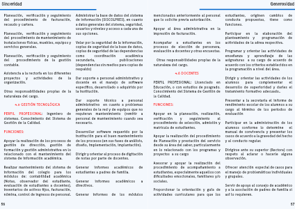 Velar por la seguridad de la información, copias de seguridad de la base de datos, copias de seguridad de las dependencias como coordinación académica secundaria, publicaciones (dependencias sin medios para copias de respaldo)
