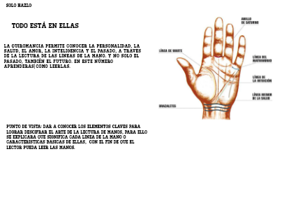 Punto de vista: Dar a conocer los elementos claves para lograr descifrar el arte de la lectura de manos, para ello se explicará que significa cada línea de la mano o características básicas de ellas, con el fin de que el lector pueda leer las manos.