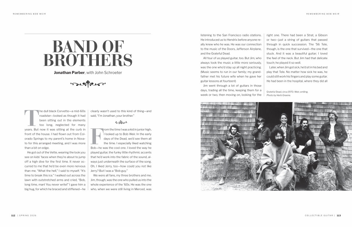 REMEMBERING BOB WEIR listening to the San Francisco radio stations. He introduced us to Hendrix before anyone really knew who he was. He was our connection to the music of the Doors, Jefferson Airplane, and the Grateful Dead.