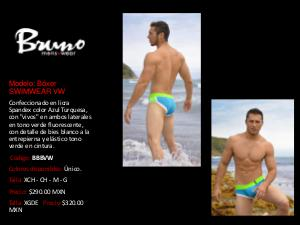 Confeccionado en licra Spandex color Azul Turquesa, con " vivos " en ambos laterales en tono verde fluorescente, con detalle de bies blanco a la entrepierna y elástico tono verde en cintura.