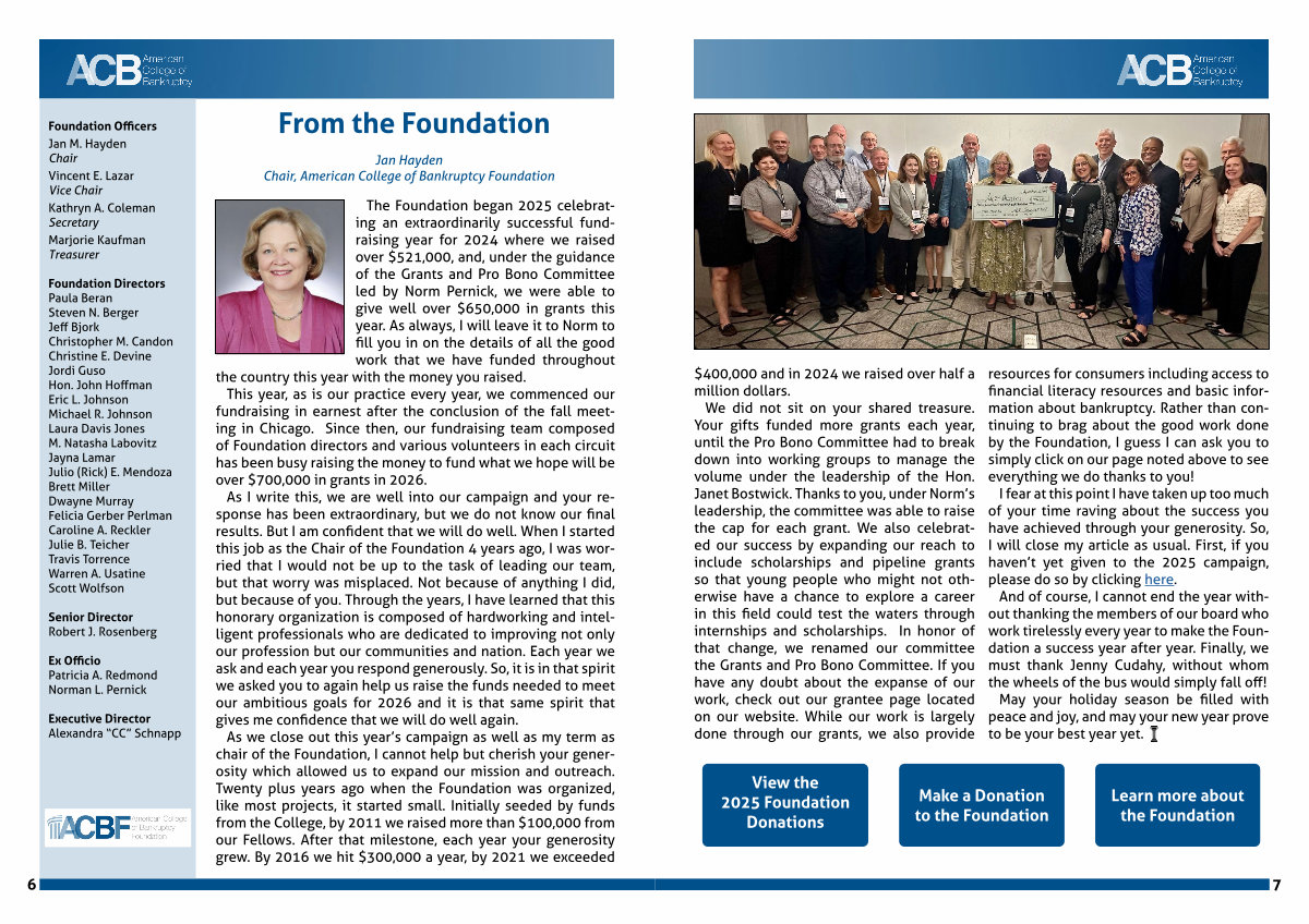 Jan Hayden Chair, American College of Bankruptcy Foundation