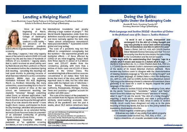 Since at least the beginning of March, fellows of the American College of Bankruptcy have struggled to confront a new reality – the presence of the coronavirus pandemic
