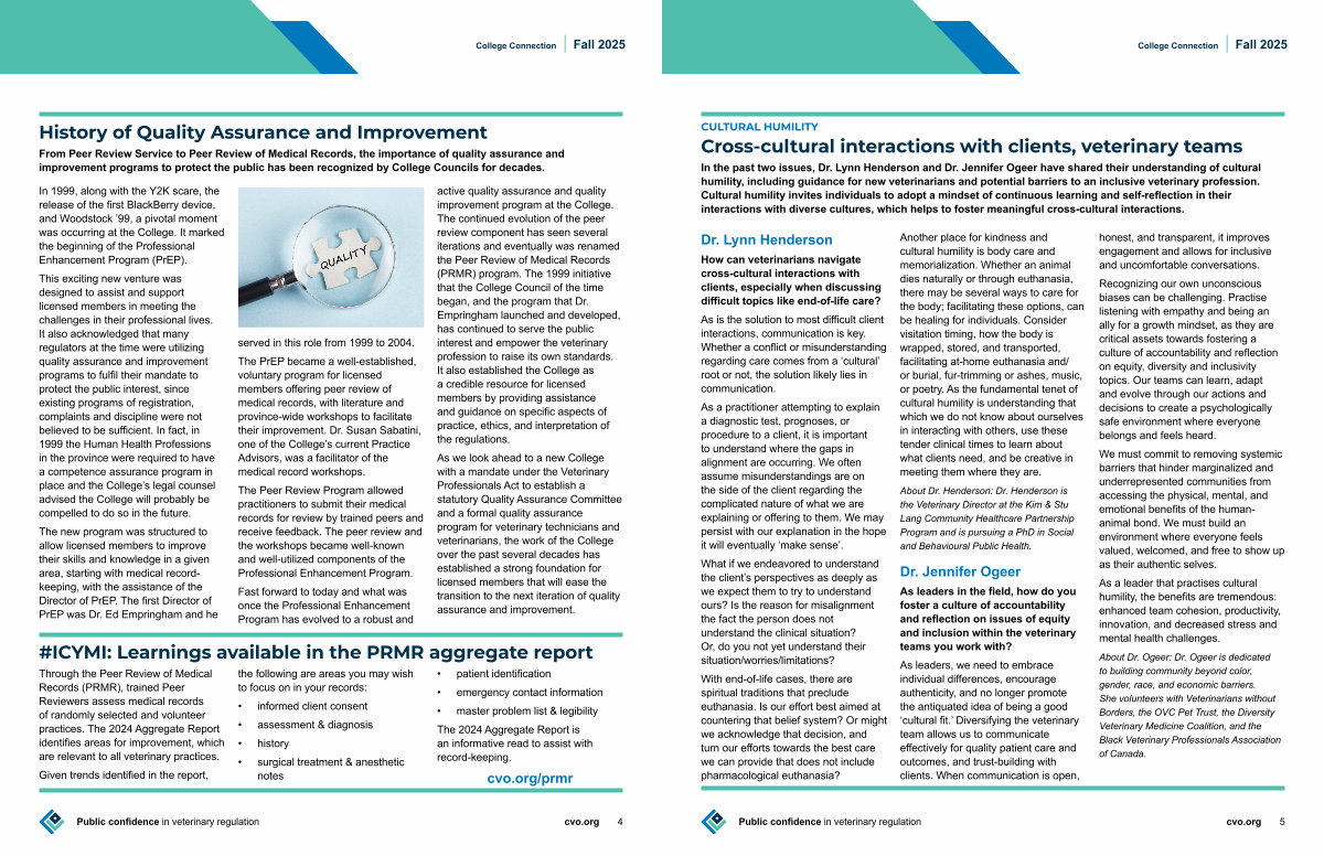 In the past two issues, Dr. Lynn Henderson and Dr. Jennifer Ogeer have shared their understanding of cultural humility, including guidance for new veterinarians and potential barriers to an inclusive veterinary profession. Cultural humility invites individuals to adopt a mindset of continuous learning and self-reflection in their interactions with diverse cultures, which helps to foster meaningful cross-cultural interactions.