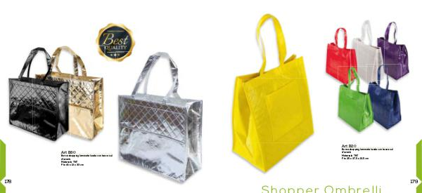 Art B80 Borsa shopping laminata lucida con tasca sul d’avanti. Materiale: TNT F.to 40 x 13 x 33 cm 178