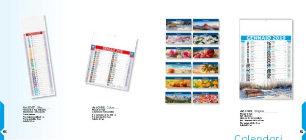 Art C029 Stagioni Mensile 12 fogli Retro illustrato Allestimento termosaldato F.to Calendario 28,8 x 47 cm F.to testata 28,8 x 9 cm Imballo 100 pz 61