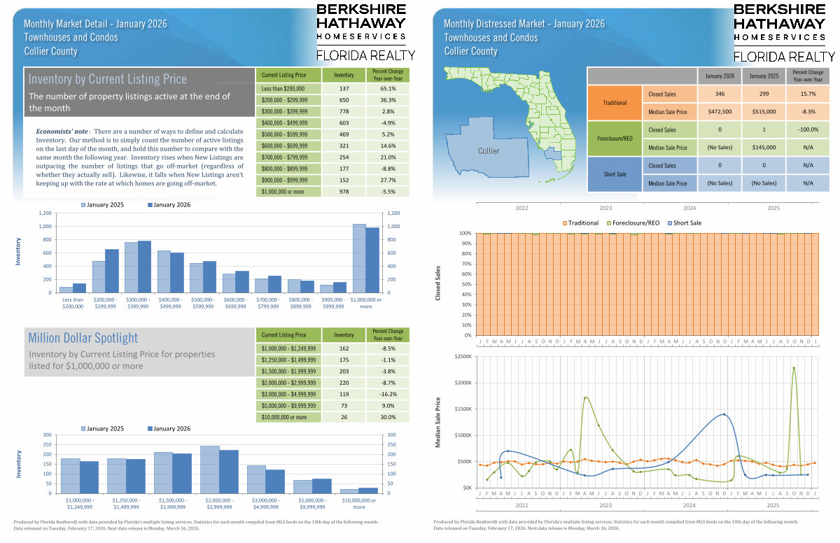 Monthly Distressed Market- January 2026 Townhouses and Condos Collier County