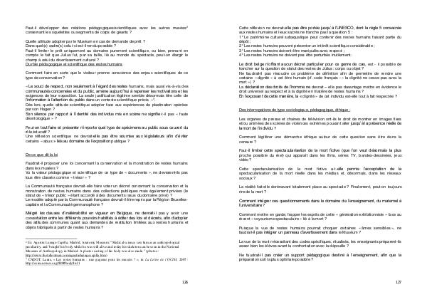 CADOT, Laure, « Les restes humains : une gageure pour les musées ? », in La Lettre de l’OCIM, 2007 :