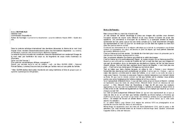 Auteur de l’ouvrage « La mort et la résurrection » pour les éditions Hazan 2009 – Guide des