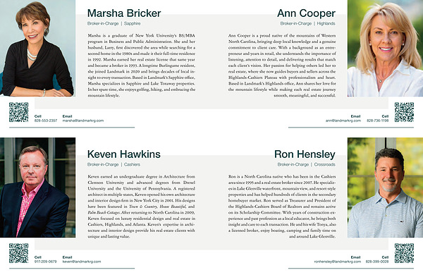 Ann Cooper is a proud native of the mountains of Western North Carolina, bringing deep local knowledge and a genuine commitment to client care. With a background as an entrepreneur and years in retail, she understands the importance of listening, attention to detail, and delivering results that match each client’ s vision. Her passion for helping others led her to real estate, where she now guides buyers and sellers across the Highlands-Cashiers Plateau with professionalism and heart. Based in Landmark’ s Highlands office, Ann shares her love for the mountain lifestyle while making each real estate journey smooth, meaningful, and successful.