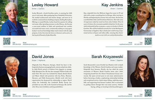 Kay, originally from the Midwest, began her career in IT and sales with a major consulting firm in Chicago. After moving to Florida and beginning her journey into real estate, she became a certified Short Sale and Foreclosure Resource. Her wide array of experience make her stand out from other brokers. Over 14 years of visits to the mountains sparked a deep love for the area, which ultimately led her to pursue a career as a broker in North Carolina. She and her husband currently live in the Burlingame Community in Sapphire. Kay is dedicated to delivering exceptional service to buyers and sellers alike, ensuring that clients’ needs are met with care and professionalism.